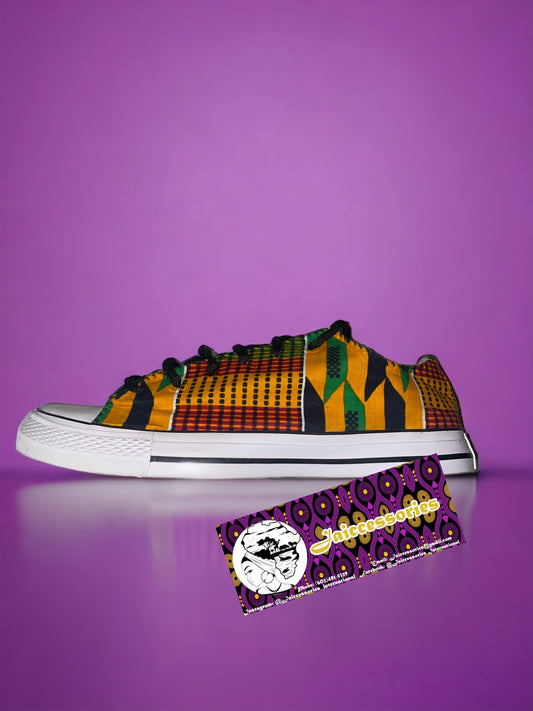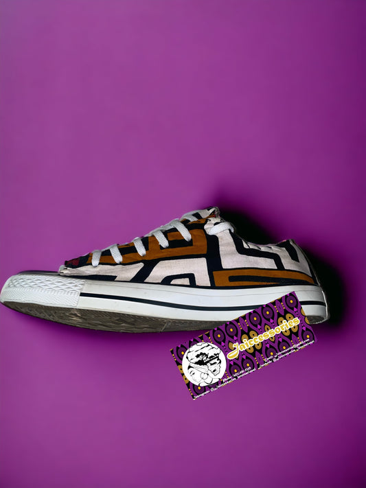 Kuba Cloth Inspired Sneakers Brown, White, & Burgundy